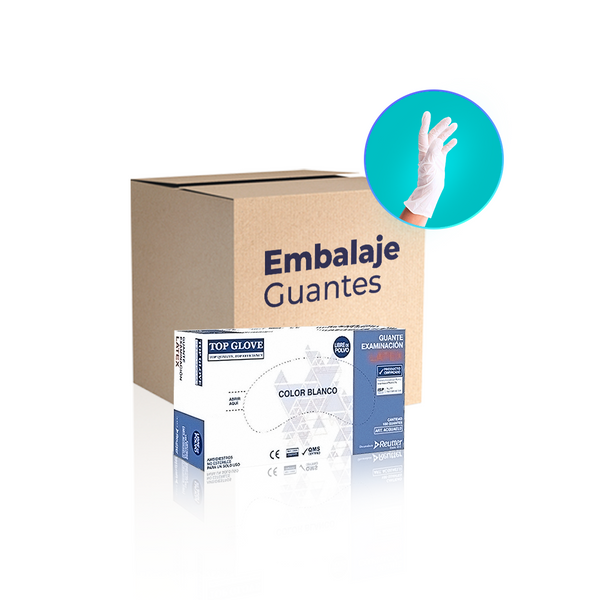 Embalaje Guante Látex Blanco Sin Polvo - 10 cajas de 100 unidades - Top Glove